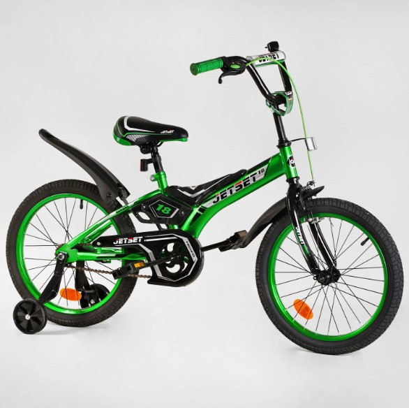 Дитячий велосипед Corso Jet Set JS-N1801 діаметр коліс 18", страхувальні колеса, ножне гальмо та дзвіночок