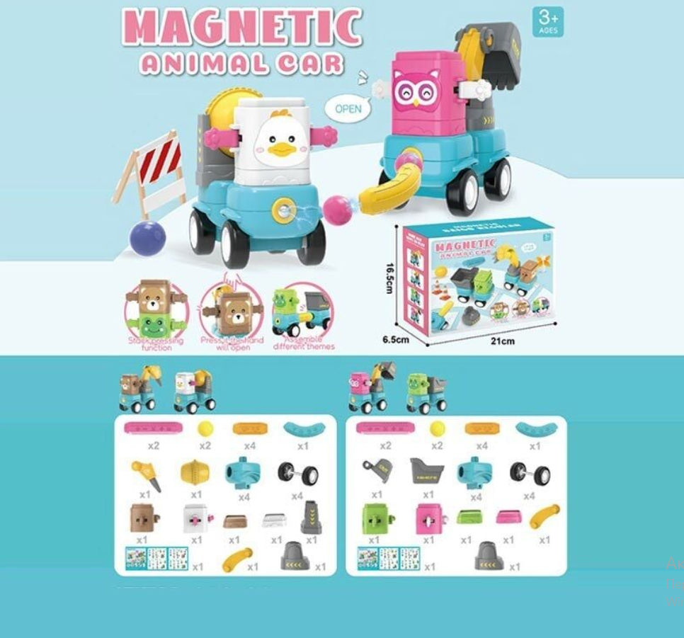 Магнітний конструктор Animal Car рухомі елементи, тріскачка