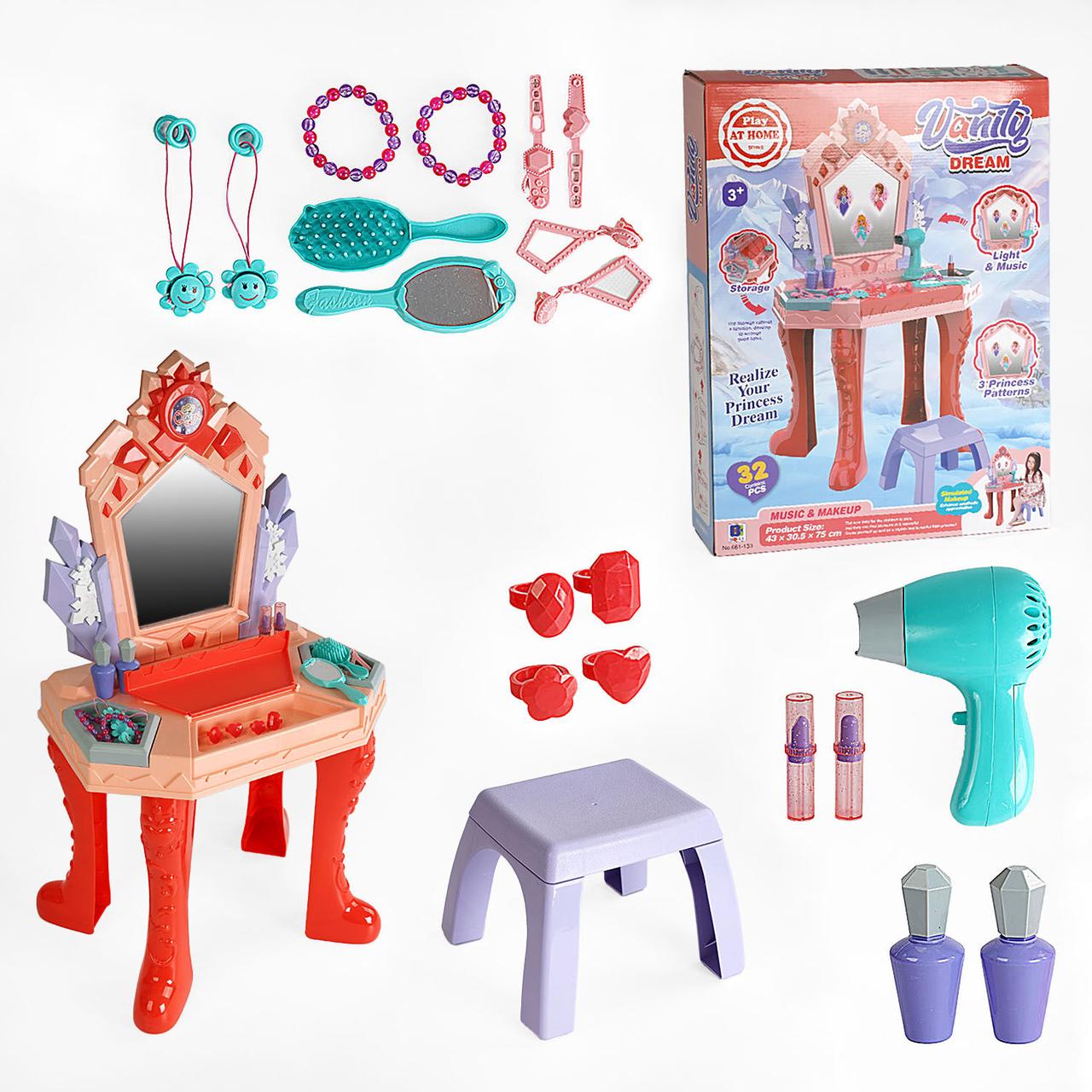 Дитячий трюмо 661-133 світло, звук, фен на батарейках, стільчик, аксесуари