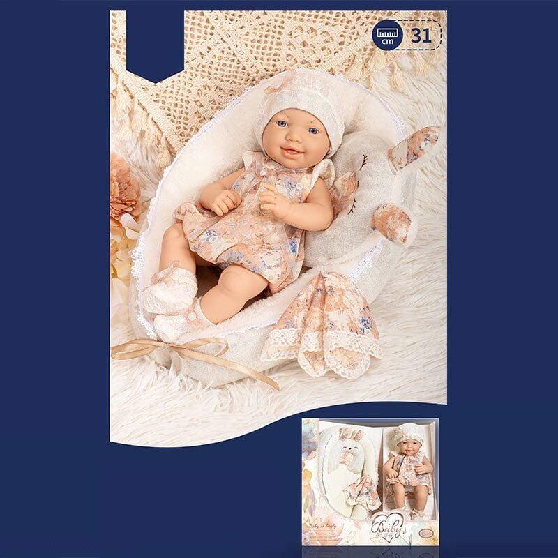 Пупс для дітей висота 31 см, знімний одяг, матрацик з подушечкою, рушник
