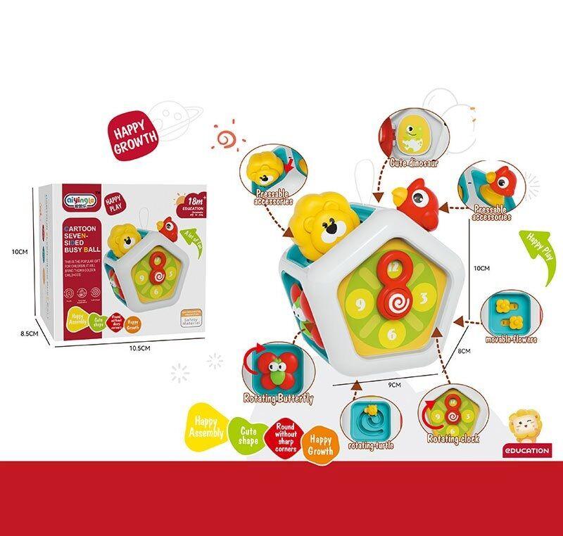 - 7 забавок (тріскачка, рухомі дверцята, пальчикові ігри тощо);